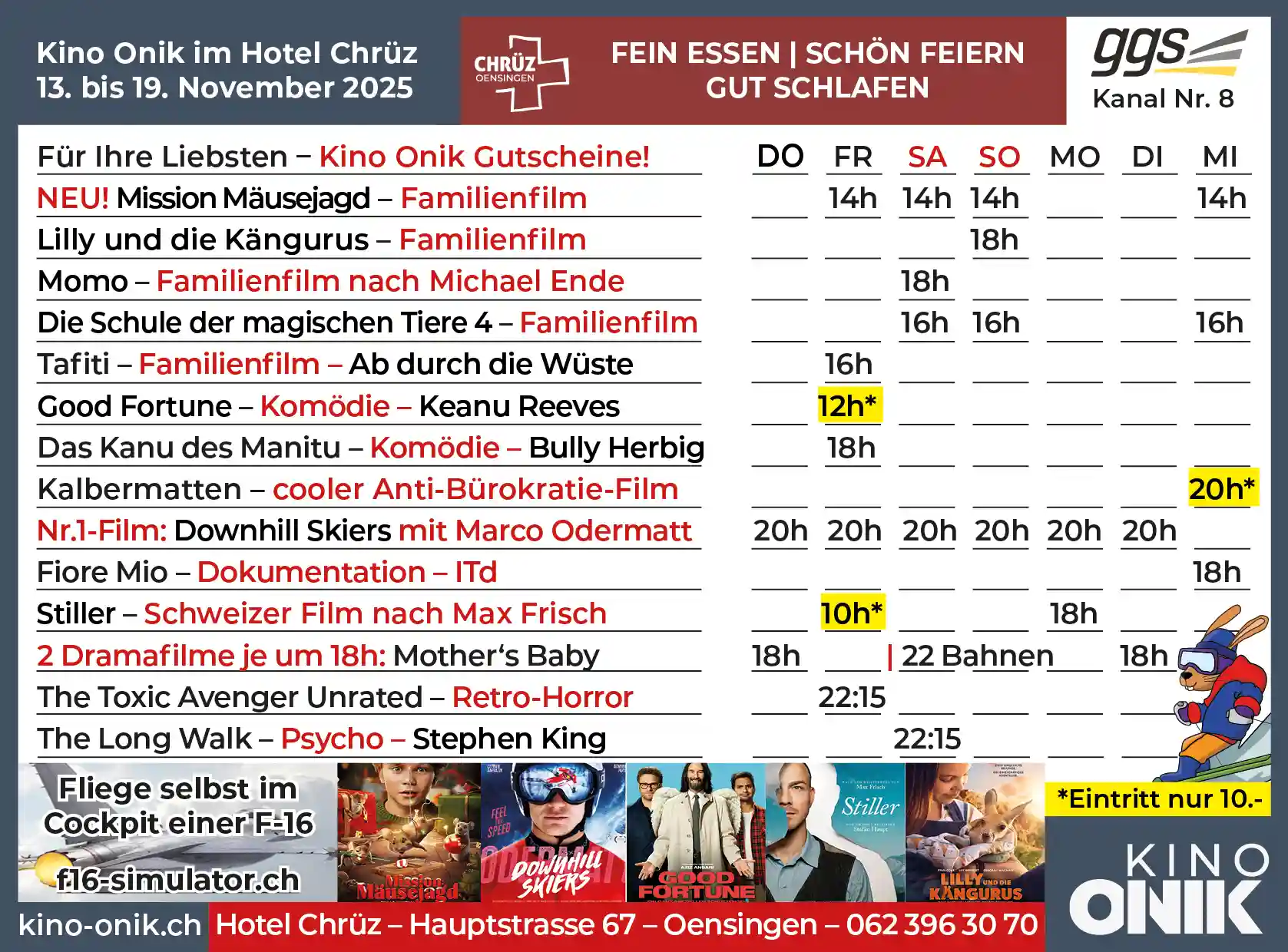 | Film: | DO: | FR: | SA: | SO: | MO: | DI: | MI: |